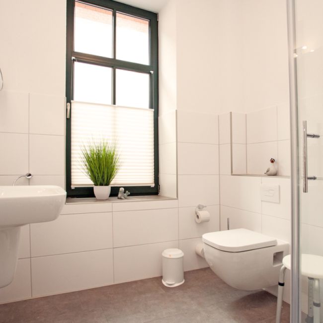 Das Duschbad ist mit einem Fenster ausgestattet und in der gesamten Wohnung ist eine Fußbodenheizung verlegt.