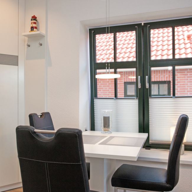 Swantje liegt in der 1. Etage des Hauses und ist mit dem Aufzug oder über einen außenliegenden Treppengang gut zu erreichen. Die Einrichtung ist modern und bietet eine von der DTV zertifizierte Ausstattung auf 4-Sterne-Niveau. Durch viele Fenster ist die Wohnung sehr schön hell. Interessant am Rande: Swantje bietet einen Blick auf alle drei Leuchttürme von Borkum.